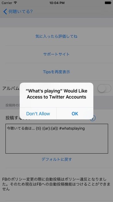 自動投稿機能は聴いていた曲から次の曲へ切替わった時は自動的に投稿される