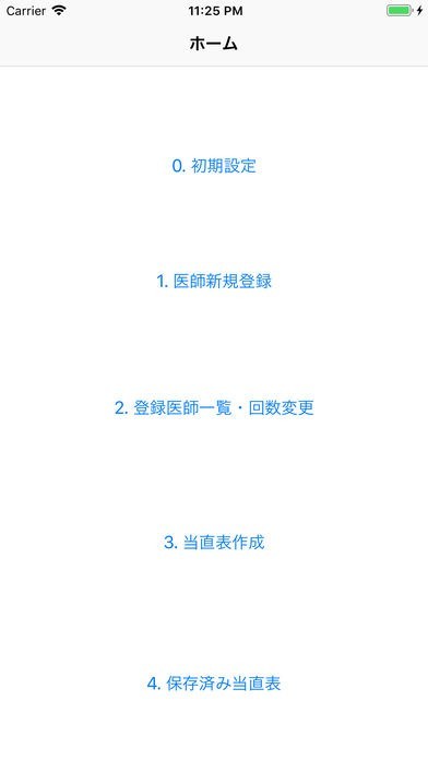 0. 初期設定画面で、あなたが当直表作成者なのか当直従事者なのかを選択します。平日夕診の有無や日祝日に日直と当直を分けるかどうかも選択します。