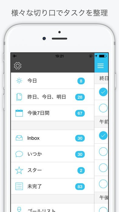 ・【様々な切り口でタスクを整理】スケジュール、スター、未完了、ゴール、タグ等様々な切り口でタスクを整理できます。