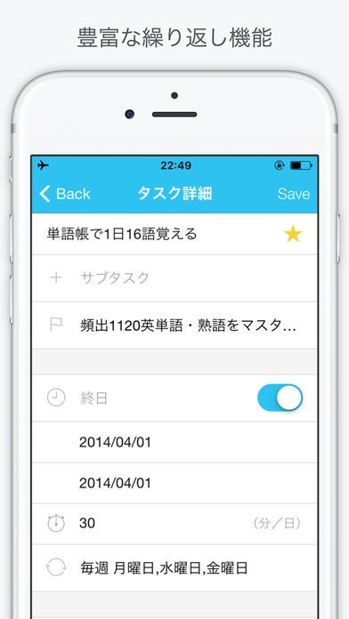 ・【繰り返し】きめ細やかな繰返し機能によりタスク管理の生産性は飛躍的に向上します。