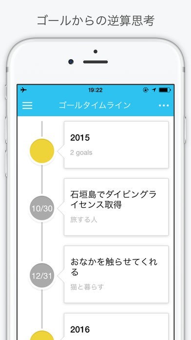 ・【ゴールからの逆算思考】アイデンティティ(役割)ごとに年、月単位のゴールを設定できます。作成したゴールは時系列に確認でき、長期的な視点とバランスを意識しながら人生設計を行うことが可能です。