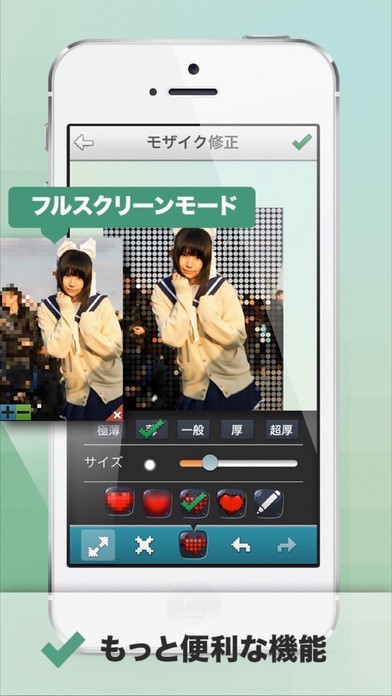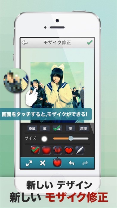 隠したい部分を指でなぞるだけで簡単にモザイクをかけ、写真を修整できるモザイク加工アプリ