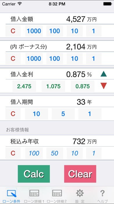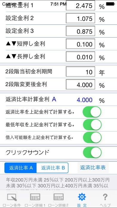 細かな返済金利の設定でプロの幅広いローン計算に対応