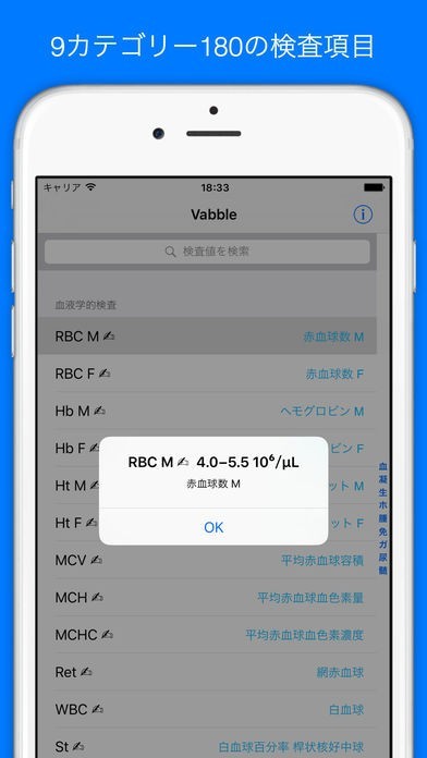 「Vabble - 検査値 基準値検索アプリ -」スペック・仕様
