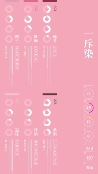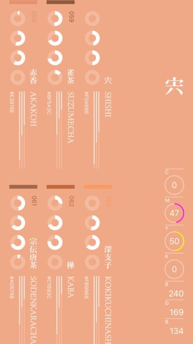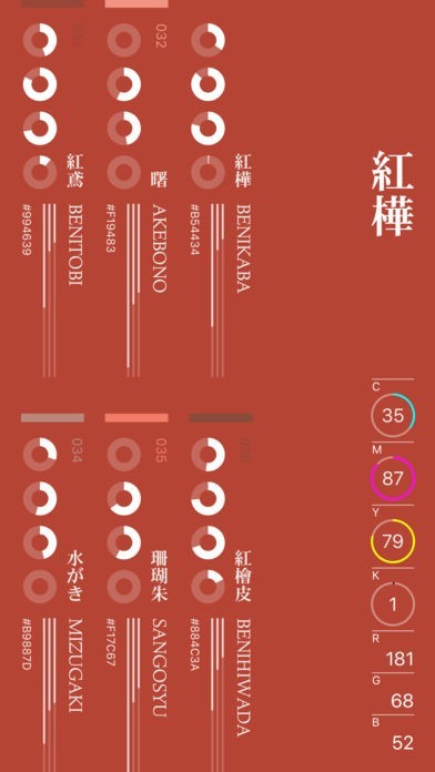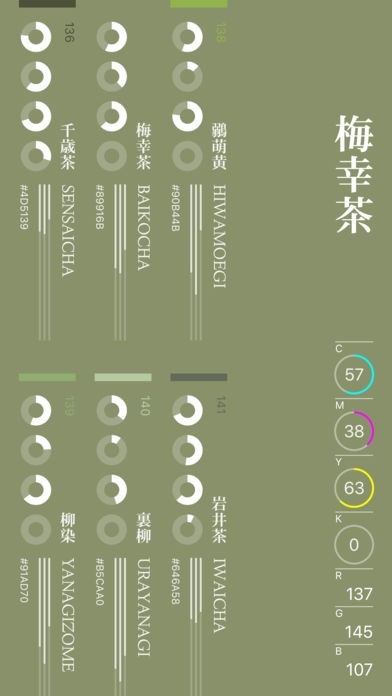 普段の生活ではあまり聞きなれない紅樺や湊鼠、千歳茶という言葉は実は日本の伝統色の色の名前です。このアプリでは伝統色がどんな色なのか、名前とともに一覧で確認することができます。