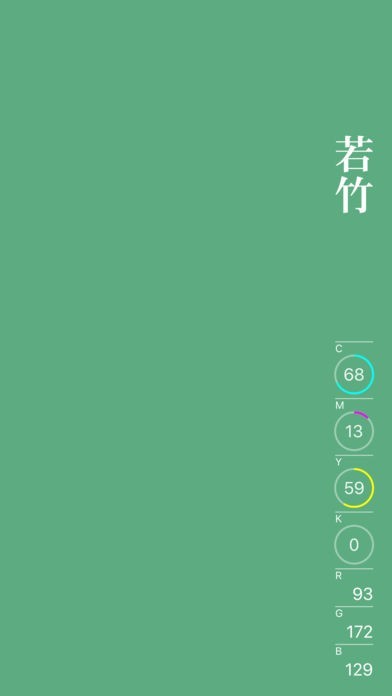 色彩の名称をクリックすると、画面の色味はその色彩に変わります。クリックひとつであなたのスマートフォンがパレットのように自在に変化し、色彩について調べることができます。