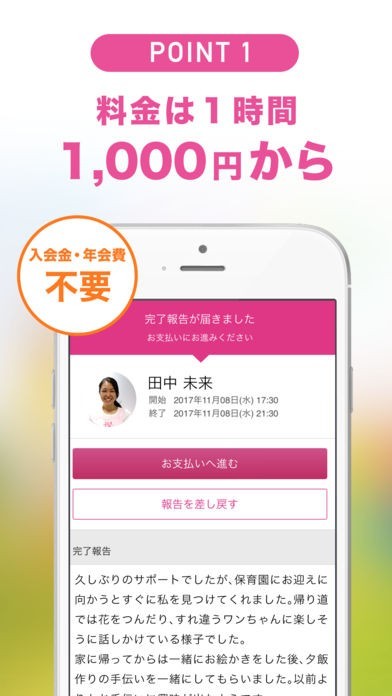 登録無料、月会費無料、業界最安値の1時間1,000円からベビーシッターが利用できます。