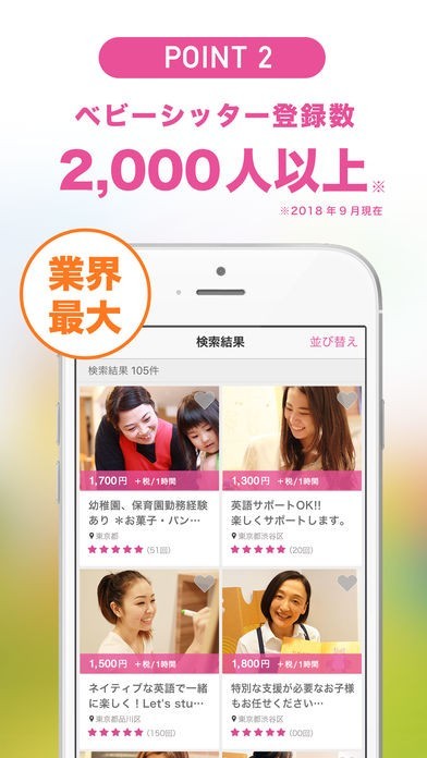身元・経歴確認の後、面談と研修をクリアしたベビーシッターだけが登録されています。