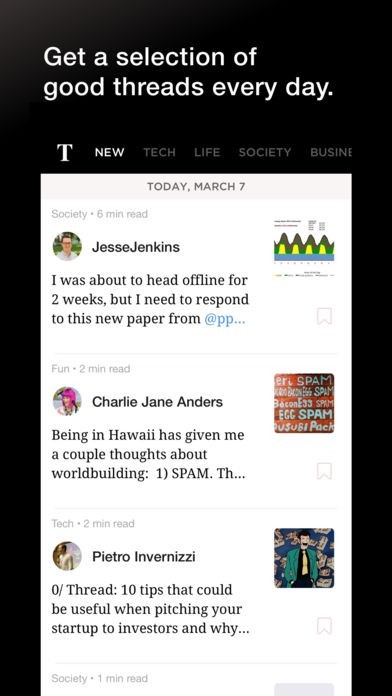 • Bookmark a thread from Twitter thanks to our extension and read it later in Threader.