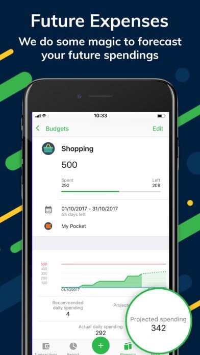 経費や収入、支出、請求書金額をタップして入力するだけで、誰でも分かりやすいレポートを作成します。支出履歴に基づいて将来の支出金額も予想するので、長期的な視点を持って予算作成をするのに便利です。