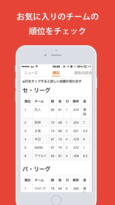 App Storeより引用YaQ はプロ野球の試合状況を簡単に確認することができるアプリです。