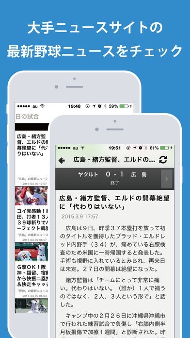 その他に、大手ニュースサイトの野球ニュースをチェックしたりできます。