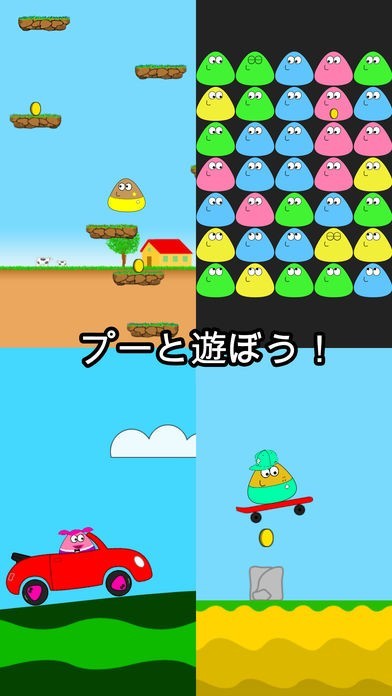 宇宙からやってきた三角形の愛らしいエイリアンに餌をやったり体を洗って育てることができます。エイリアンの名前は「プー」。お世話だけじゃなくプーと一緒にミニゲームで遊ぶこともできます。