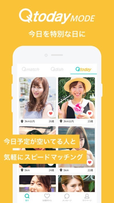 アプリ搭載の3つのモードは本当の出会いに発展させる力になります。中でもQtodayモードは日程合わせには最適です。空いている時間を指定することで条件のよい相手とマッチングしてくれます。