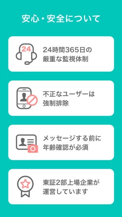 このアプリがomiaiという6年の運営実績があるアプリの姉妹サイトで安心して使えるというのがあります。またQooNも東証に上場しているのでこのアプリも安心して使えます。