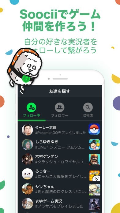 2. 同じ嗜好のゲーム仲間を探す:Soociiで同じゲームにハマっている仲間を見つけよう!その仲間をフォローし、彼らの面白い実況配信を追ってみよう!