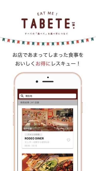 「TABETE」は、スマートフォンからレストランで余ってしまった食事を予約してテイクアウトすることができるアプリとなっているので、ゴミとなってしまう食事を減らすことができます。