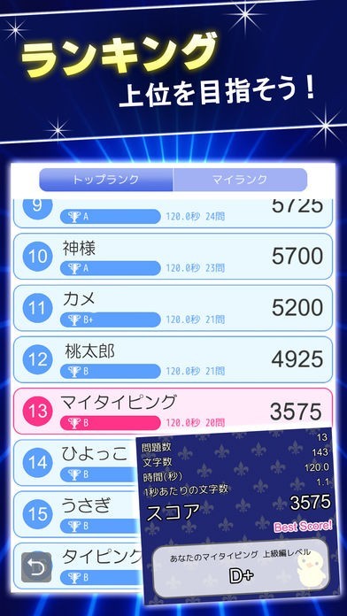 スコアランキングで他人と比較できて自分のレベルが計れるなんて全国模試みたいで楽しいです。