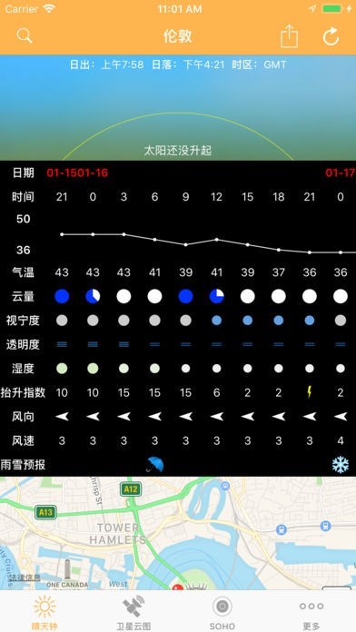 App Storeより引用晴天钟是天文爱好者必备的实用小工具。晴天钟主要提供天文用途的天气预报,它的预报时长为3天,提供诸如视宁度、透明度等天文学家比较关心的气象量的预报。