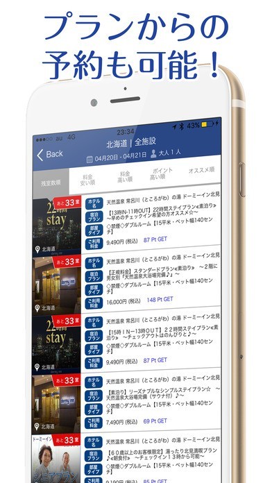料金やプランのチェックも可能!便利な予約機能は旅行や出張にもお役立ち!