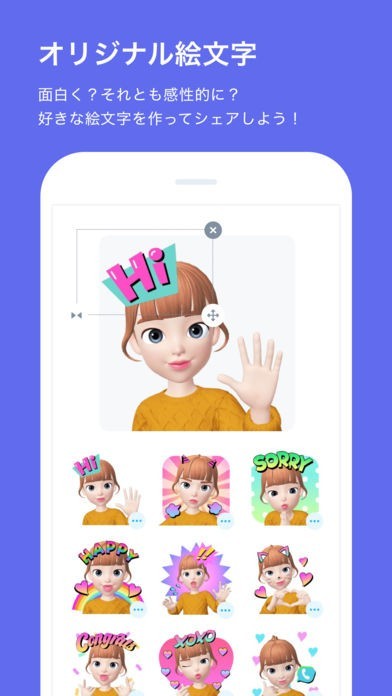 作成したキャラクターでオリジナルの絵文字が作れたり、自分のアバターとして楽しむことができます。