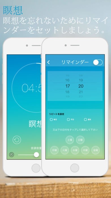 瞑想を習慣化するためのコツの一つtが毎日決まった時間に瞑想に取り組むということです。アプリ内のリマインダーをセットしておけば毎日瞑想を行う習慣を身に着けることができるでしょう。