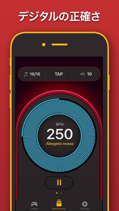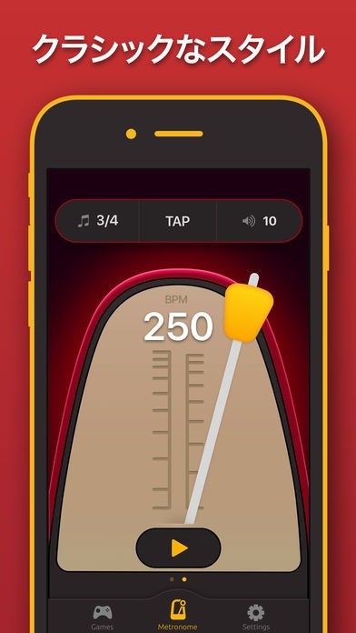 本物のメトロノームのように自由にリズムが設定できる優れものアプリ