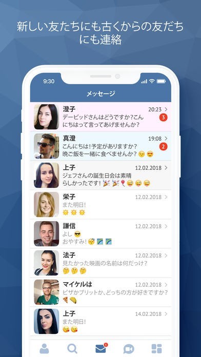 絞り込み検索に対応しているので、共通の趣味を持ったユーザーや同じ出身地の登録者も簡単に調べる事が可能でしょう。メッセージ画面に可愛らしい絵文字を挿入出来るのも特徴ですね。