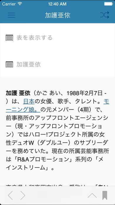 オフラインでウィキペディアを読め、検索した記事だけでなく人気順などで記事を読むこともできます。