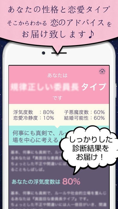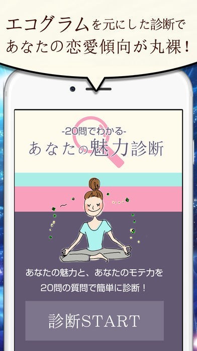 App Storeより引用噂のエコグラム診断を取り入れた簡単な恋愛診断で、あなたの恋愛的魅力を導き出します!