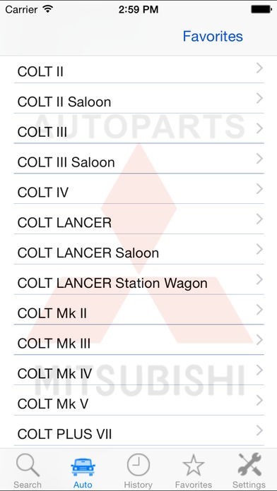 英語版の三菱の乗用車のパーツリストです。車名が海外仕様になっており、海外専用車のパーツも掲載されています。