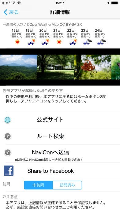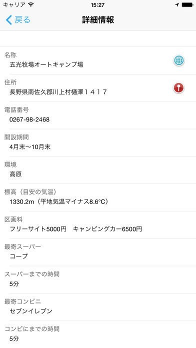 オートキャンプ場に関する情報をFacebookに素早く共有する事が可能です。さらに周辺のスーパーやコンビニの場所を地図でピックアップ出来るので、買い出しの準備も効率的に行えるでしょう。
