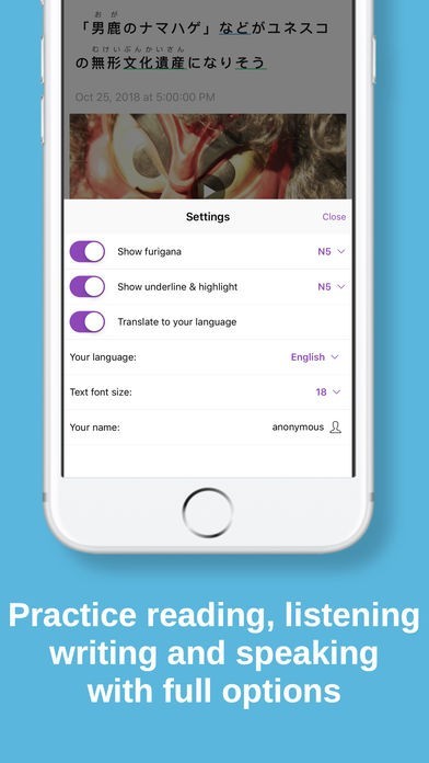- フルアドオンでニュースを読む:フリガナを隠し、記事の重要な単語をハイライトし、JLPTレベルでボキャブラリを強調し、記事の文法構造を分析し、フォントサイズを変更します。