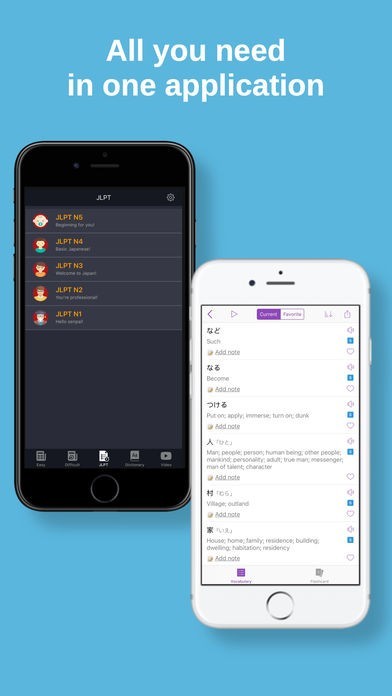 JLPT N5、N4、N3、N2、N1レベルのスイートです。