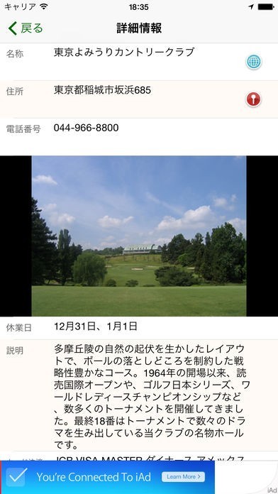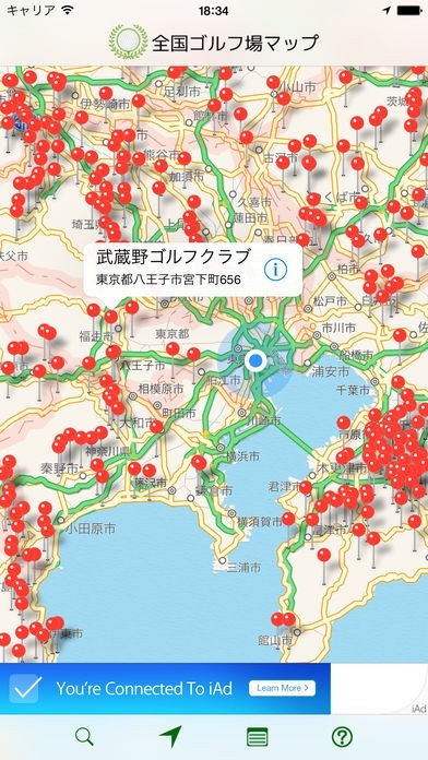 App Storeより引用全国1,800ヶ所以上のゴルフ場を地図上に表示します。