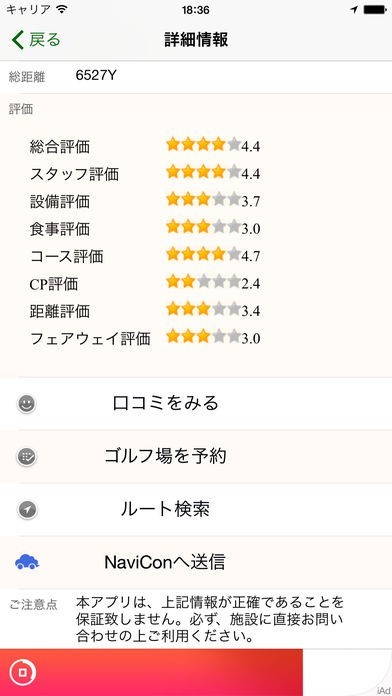 また表示したゴルフ場への予約やゴルフ場までのルート案内等も簡単に行う事が出来ます。