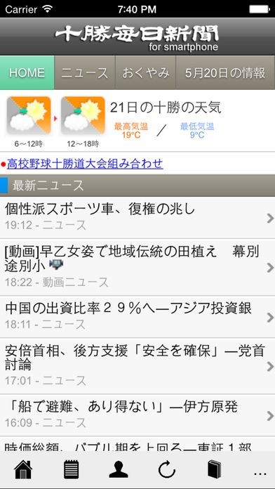 高校野球速報や天気予報に関する記事が閲覧出来るので、北海道の最新ニュースも素早く入手出来ました