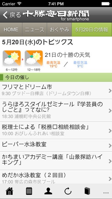 今日はどんな催し物があるか。などを見出しですぐ確認できる