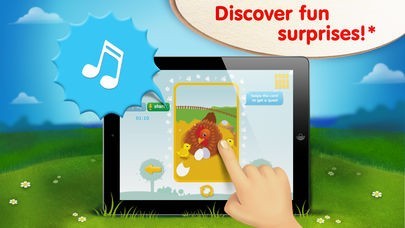 音楽の途中で可愛い家畜たちのイラストをタッチすると、イラストが動いて音が鳴る仕掛けになっています。音楽を聴きながらイラストをタップして遊べるので、小さな子供でも楽しめます。