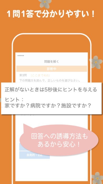 認知症診断アプリ『Moffワスレナグサ』は、質問はアプリ内に表示され、回答はボタンを押してくだけ。