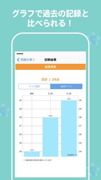 App Storeより引用Moffワスレナグサは、認知症のチェック・テストとして、広く医療機関等で使われている「長谷川式簡易知能評価スケール」(HDS-R)を使用し、どなたでも簡単に認知機能のチェック・テストを実施できる認知症テスト用のアプリです。