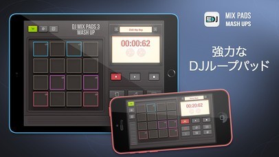 App Storeより引用「DJ Mix Pads」の第三世代ですよ!この多機能でシンプルな楽器とあなたは音楽に突っ込むことができます!