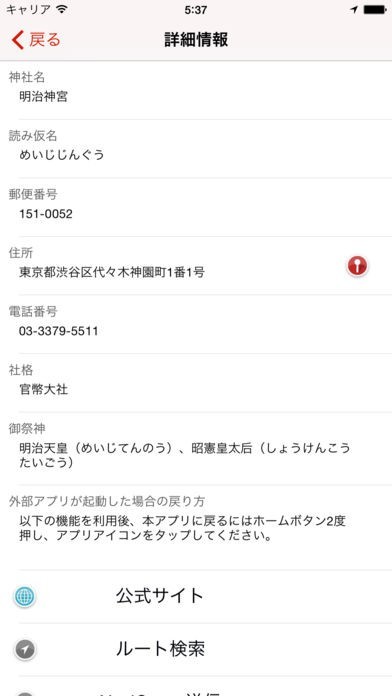 ルート検索が備わっているので迷うことなく神社巡りを楽しめてます。