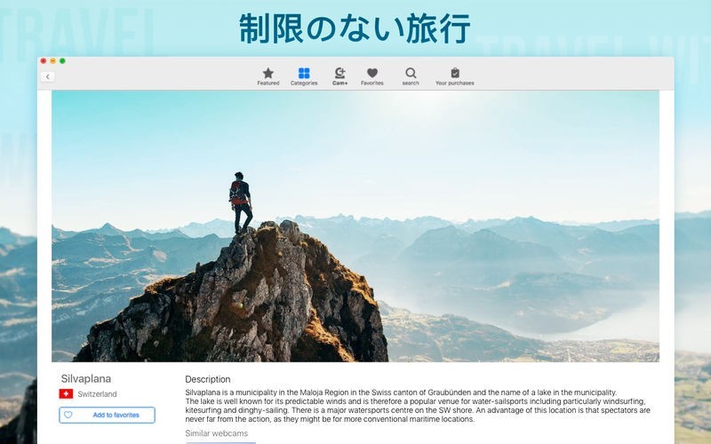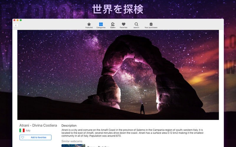 App Storeより引用• 何百もの隠れたカメラで世界中のすばらしい旅行で、24時間の高品質なオンライン放送されます。