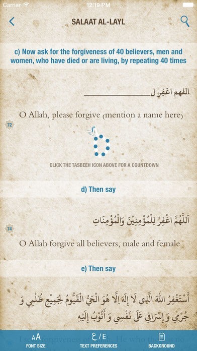 カウンター画面にアラビア語で朗読する文章とその英訳、および唱える回数のカウントダウンが表示されるようにしてイスラム教にあまり詳しくない人に教えたい時におすすめです。