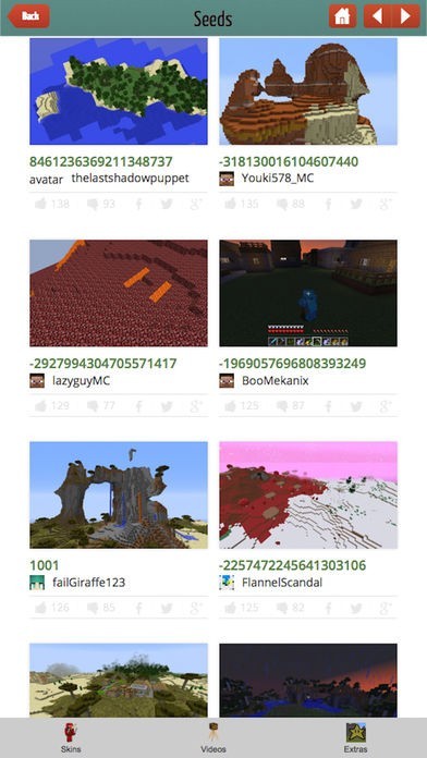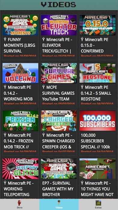 ビデオタブではマインクラフトの多種多様なプレイ動画や攻略ノウハウを閲覧することができるようになっています。ゲームをプレイしたことのない人でも動画を閲覧するだけでも面白い、楽しめる動画がいっぱいです。