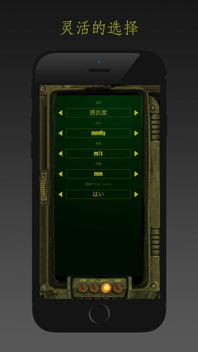 有名ゲームFalloutのPipboyスタイルの天気予報アプリ