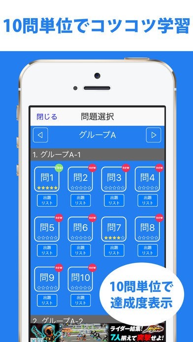 10問ずつの学習で効率的!グラフで進行度が確認できる