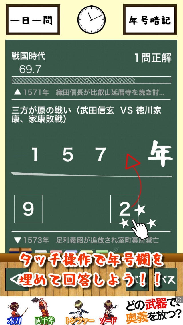 年号教室 日本史年号どれだけ知ってる? タッチ操作で簡単解答!のスクリーンショット