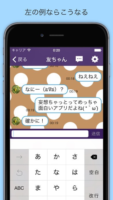 妄想ちゃっと。はコミュニケーションにつかれてしまったり自分の妄想通りに会話をしたい方にお勧めです。自分で友達を増やして、自分好みに返答を返してくれるように設定をすることが出来ます。